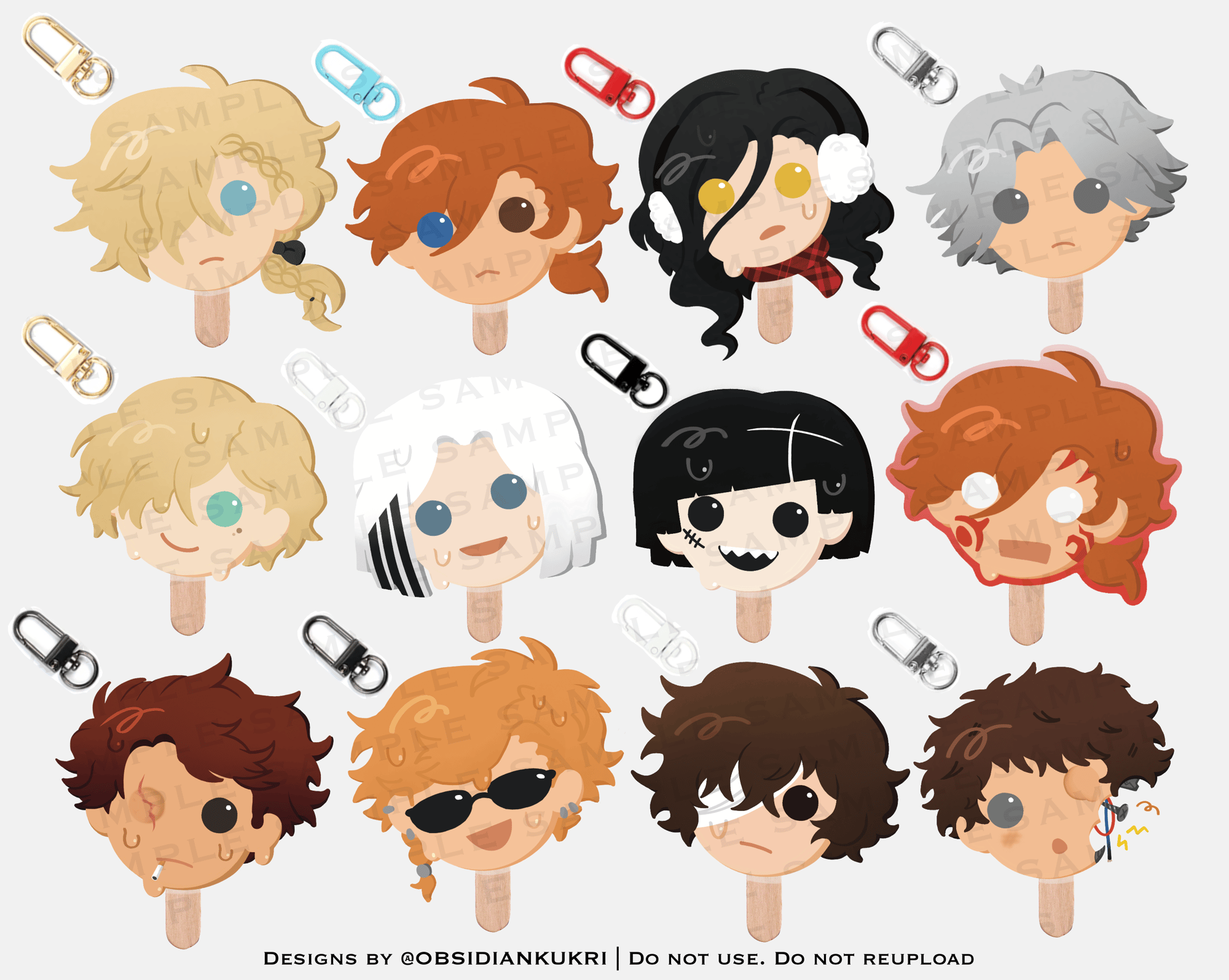 These keychains feature several different characters from Bungo Stray Dogs’ Light Novel: Storm Bringer as classic character popsicles you would find on ice cream trucks!